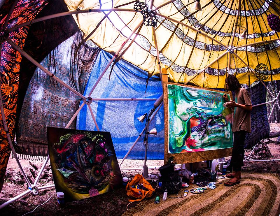 Also, I wish I had more and better pictures to share with you guys. I setup the dome to look and feel like a living room, complete with rugs, coffee table, mood lighting, and couch, something inviting for the festival patrons to feel inclined to come relax and enjoy the painting.